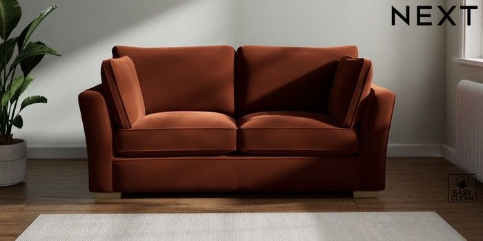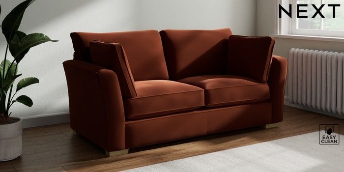 7.2.10 Heath Highback 3 Seater Small Sofa Plush Velvet Easy Clean Ginger Orange Block - Light | Made Click here to use our website with more accessibility support, for example screen readers