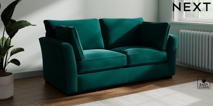 7.2.10 Heath Highback 3 Seater Small Sofa Plush Velvet Easy Clean Juniper Green Block - Dark | Made Click here to use our website with more accessibility support, for example screen readers