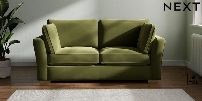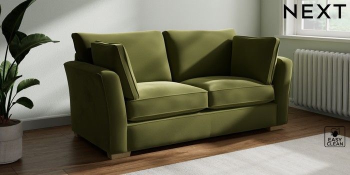 7.2.10 Heath Highback 3 Seater Small Sofa Plush Velvet Easy Clean Mid Olive Green Block - Light | Made Click here to use our website with more accessibility support, for example screen readers