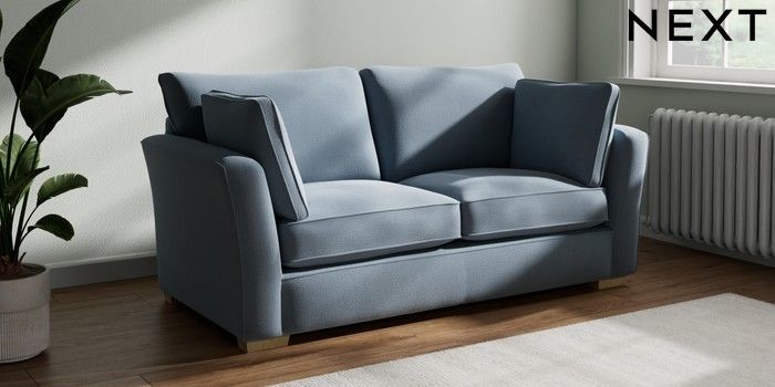 7.2.10 Heath Highback 3 Seater Small Sofa Relaxed Linen Look Mid Blue Block - Light | Made Click here to use our website with more accessibility support, for example screen readers