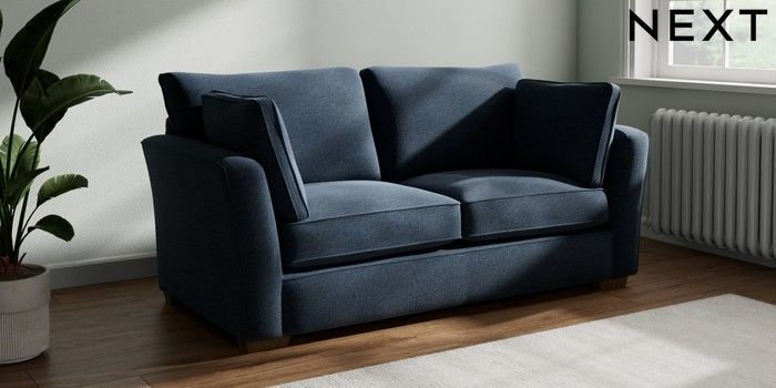 7.2.10 Heath Highback 3 Seater Small Sofa Ripple Chenille Dark Blue Block - Mid | Made Click here to use our website with more accessibility support, for example screen readers