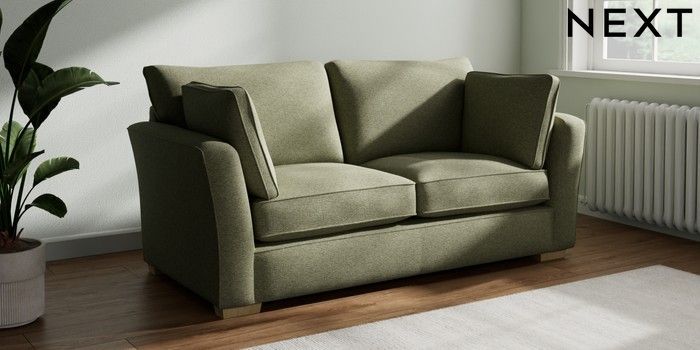 7.2.10 Heath Highback 3 Seater Small Sofa Tweedy Chenille Mid Moss Green Block - Light | Made Click here to use our website with more accessibility support, for example screen readers