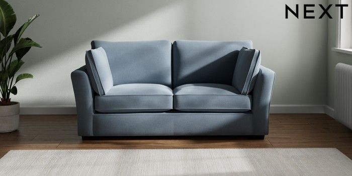 7.2.10 Heath Highback 3 Seater Sofa Relaxed Linen Look Mid Blue Block - Dark | Made Click here to use our website with more accessibility support, for example screen readers