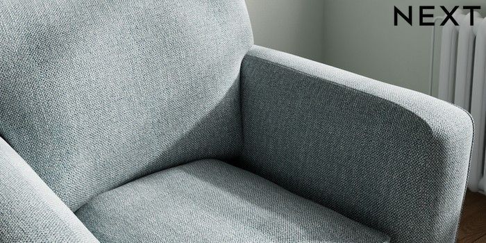 7.2.10 Heath Highback Armchair Chunky Weave Mid Blue Block - Light | Made Click here to use our website with more accessibility support, for example screen readers