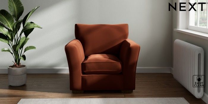 7.2.10 Heath Highback Armchair Plush Velvet Easy Clean Ginger Orange Block - Mid | Made Click here to use our website with more accessibility support, for example screen readers