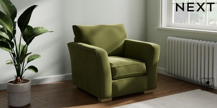 7.2.10 Heath Highback Armchair Plush Velvet Easy Clean Mid Olive Green Block - Light | Made Click here to use our website with more accessibility support, for example screen readers