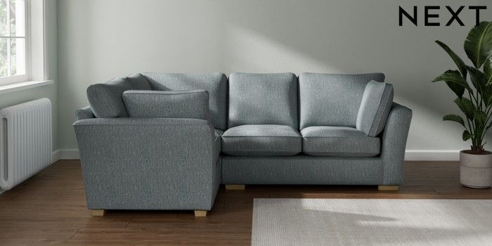 7.2.10 Heath Highback Medium Corner Sofa - Left Hand Chunky Weave Mid Blue Block - Light | Made Click here to use our website with more accessibility support, for example screen readers