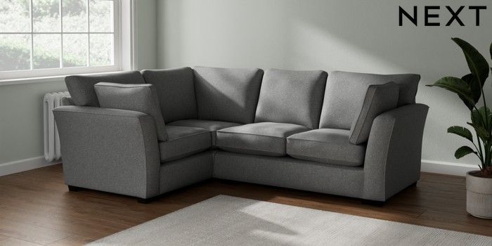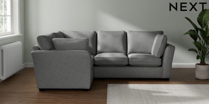 7.2.10 Heath Highback Medium Corner Sofa - Left Hand Chunky Weave Mid Grey Block - Dark | Made Click here to use our website with more accessibility support, for example screen readers