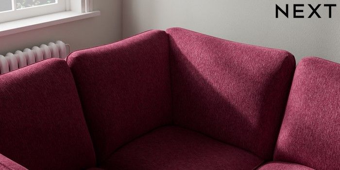 7.2.10 Heath Highback Medium Corner Sofa - Left Hand Cotswold Chenille Dark Raspberry Pink Block - Light | Made Click here to use our website with more accessibility support, for example screen readers