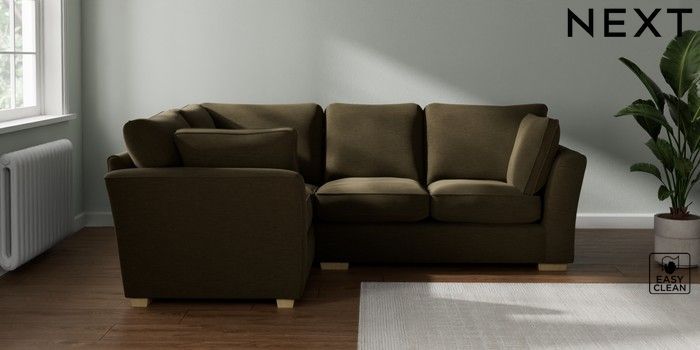7.2.10 Heath Highback Medium Corner Sofa - Left Hand Fine Chenille Easy Clean Dark Moss Green Block - Light | Made Click here to use our website with more accessibility support, for example screen readers