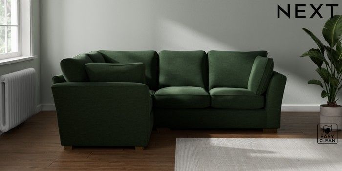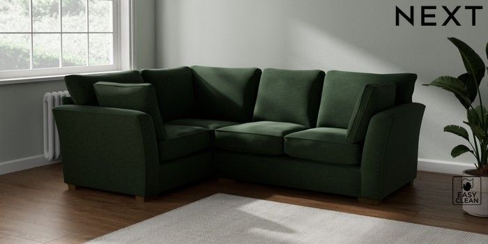 7.2.10 Heath Highback Medium Corner Sofa - Left Hand Fine Chenille Easy Clean Mid Khaki Green Block - Mid | Made Click here to use our website with more accessibility support, for example screen readers