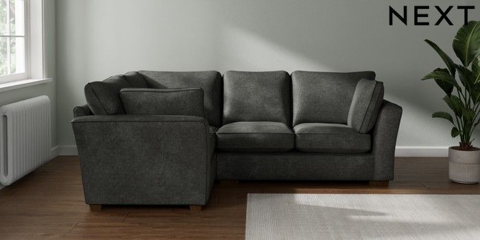 7.2.10 Heath Highback Medium Corner Sofa - Left Hand Plush Chenille Dark Grey Block - Mid | Made Click here to use our website with more accessibility support, for example screen readers