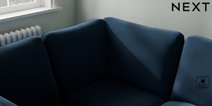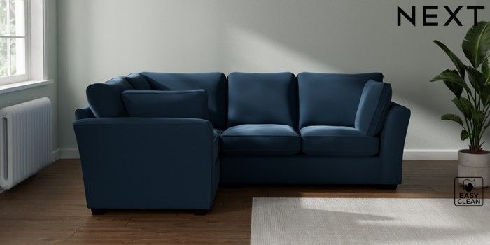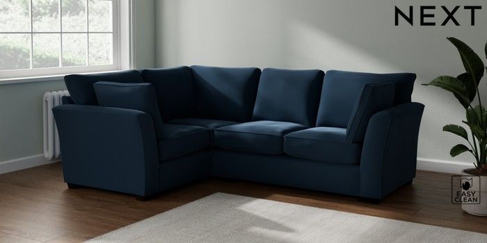 7.2.10 Heath Highback Medium Corner Sofa - Left Hand Plush Velvet Easy Clean Airforce Blue Block - Dark | Made Click here to use our website with more accessibility support, for example screen readers