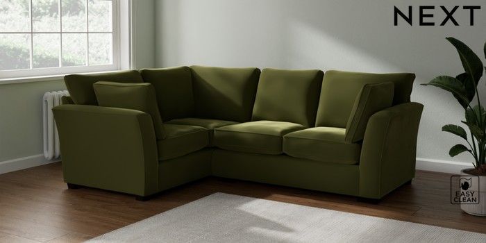 7.2.10 Heath Highback Medium Corner Sofa - Left Hand Plush Velvet Easy Clean Mid Olive Green Block - Dark | Made Click here to use our website with more accessibility support, for example screen readers