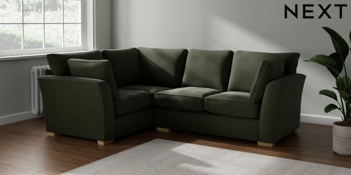 7.2.10 Heath Highback Medium Corner Sofa - Left Hand Relaxed Linen Look Dark Green Block - Light | Made Click here to use our website with more accessibility support, for example screen readers