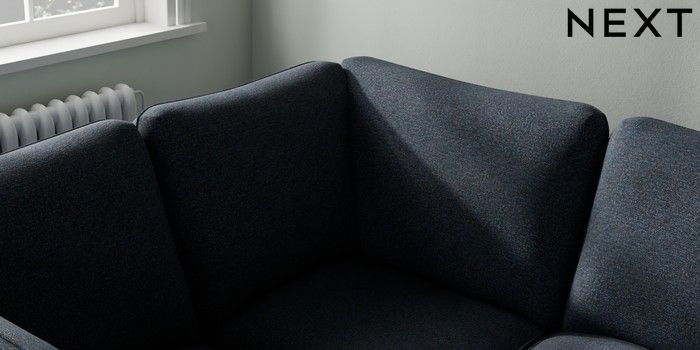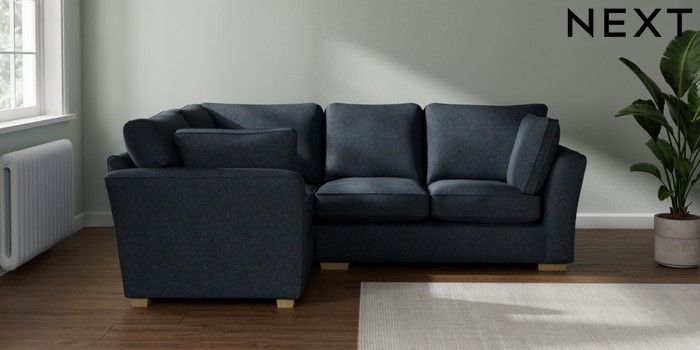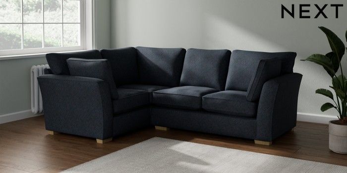 7.2.10 Heath Highback Medium Corner Sofa - Left Hand Tweedy Chenille Navy Blue Block - Light | Made Click here to use our website with more accessibility support, for example screen readers