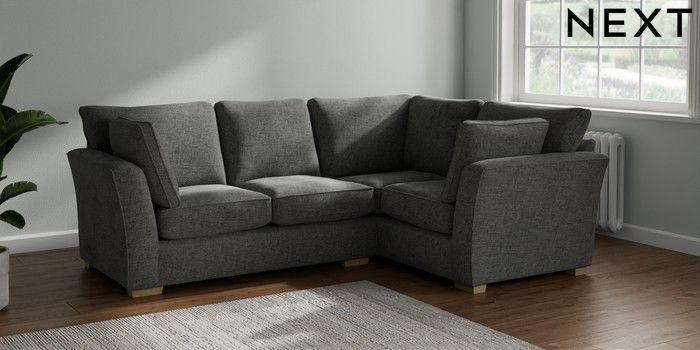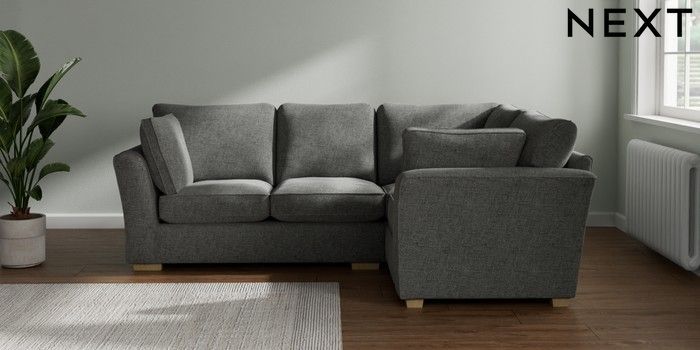 7.2.10 Heath Highback Medium Corner Sofa - Right Hand Chunky Chenille Dark Grey Block - Light | Made Click here to use our website with more accessibility support, for example screen readers