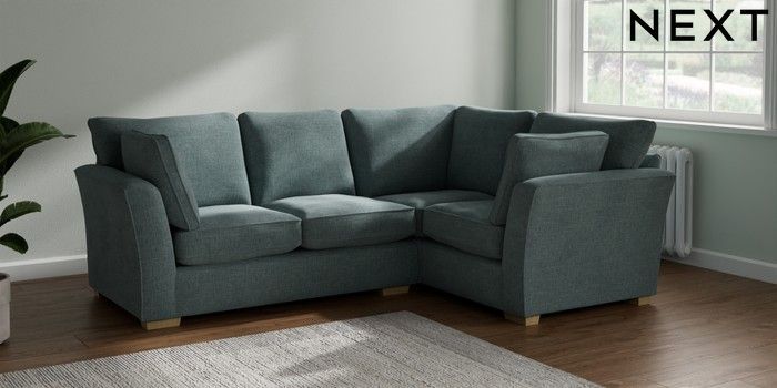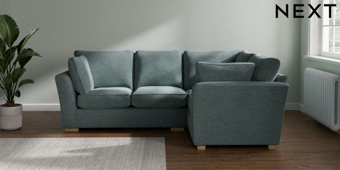 7.2.10 Heath Highback Medium Corner Sofa - Right Hand Chunky Chenille Light Teal Green Block - Light | Made Click here to use our website with more accessibility support, for example screen readers