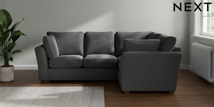 7.2.10 Heath Highback Medium Corner Sofa - Right Hand Chunky Texture Dark Grey Block - Mid | Made Click here to use our website with more accessibility support, for example screen readers