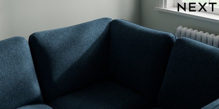 7.2.10 Heath Highback Medium Corner Sofa - Right Hand Cotswold Chenille Dark Blue Block - Light | Made Click here to use our website with more accessibility support, for example screen readers