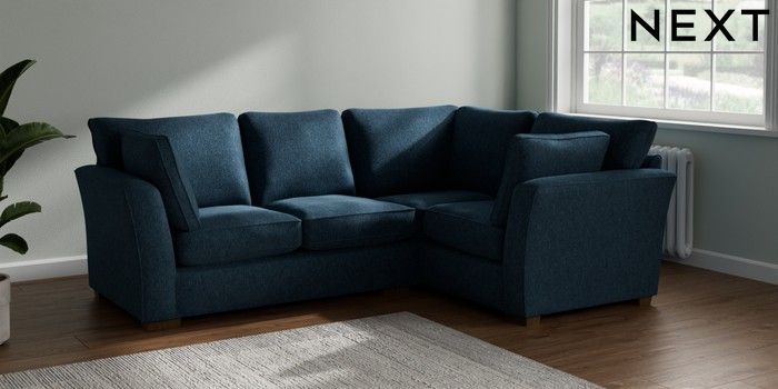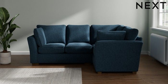7.2.10 Heath Highback Medium Corner Sofa - Right Hand Cotswold Chenille Dark Blue Block - Mid | Made Click here to use our website with more accessibility support, for example screen readers