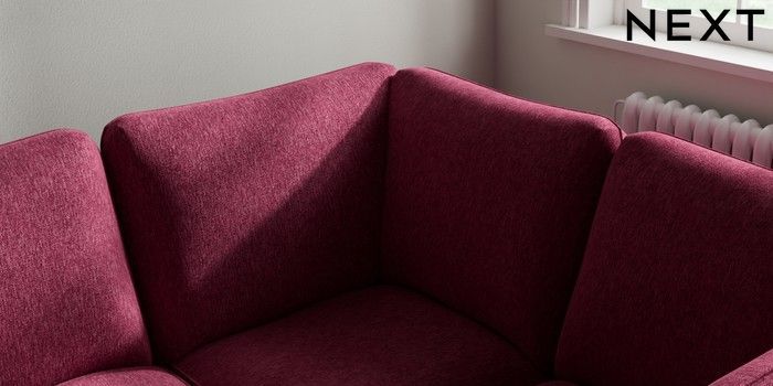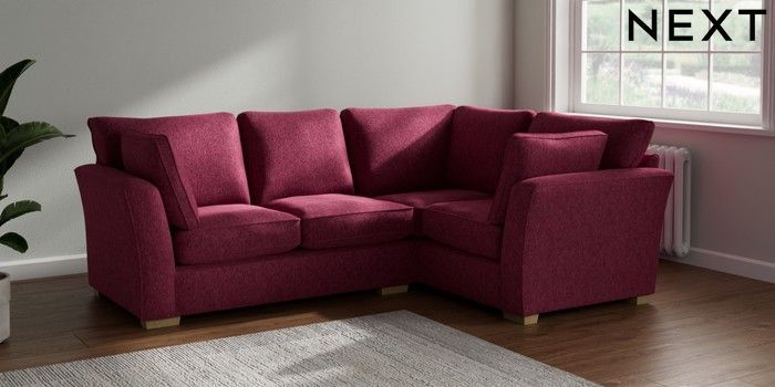 7.2.10 Heath Highback Medium Corner Sofa - Right Hand Cotswold Chenille Dark Raspberry Pink Block - Light | Made Click here to use our website with more accessibility support, for example screen readers