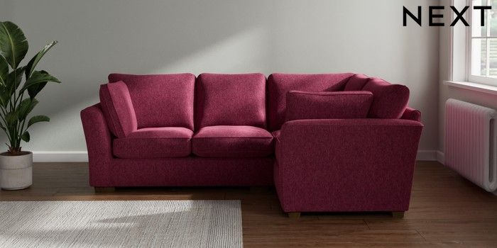 7.2.10 Heath Highback Medium Corner Sofa - Right Hand Cotswold Chenille Dark Raspberry Pink Block - Mid | Made Click here to use our website with more accessibility support, for example screen readers