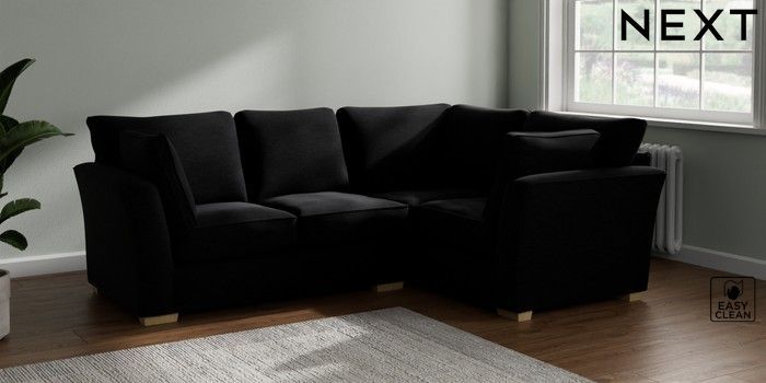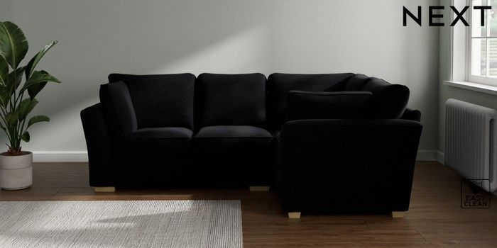 7.2.10 Heath Highback Medium Corner Sofa - Right Hand Fine Chenille Easy Clean Black Block - Light | Made Click here to use our website with more accessibility support, for example screen readers