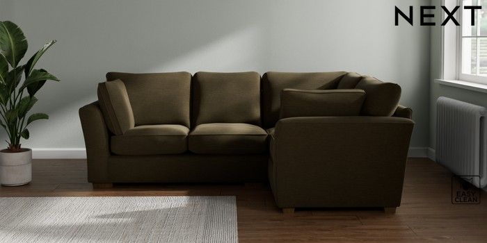 7.2.10 Heath Highback Medium Corner Sofa - Right Hand Fine Chenille Easy Clean Dark Moss Green Block - Mid | Made Click here to use our website with more accessibility support, for example screen readers