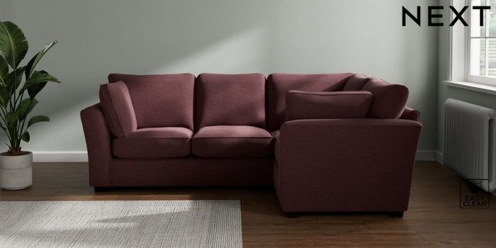 7.2.10 Heath Highback Medium Corner Sofa - Right Hand Fine Chenille Easy Clean Mid Mulberry Purple Block - Dark | Made Click here to use our website with more accessibility support, for example screen readers