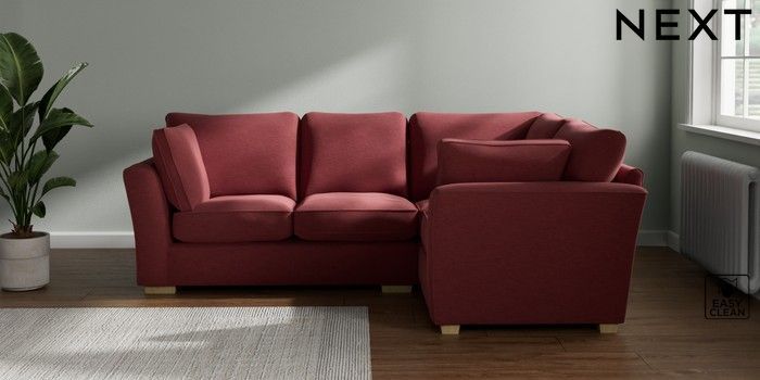 7.2.10 Heath Highback Medium Corner Sofa - Right Hand Fine Chenille Easy Clean Mid Pink Block - Light | Made Click here to use our website with more accessibility support, for example screen readers