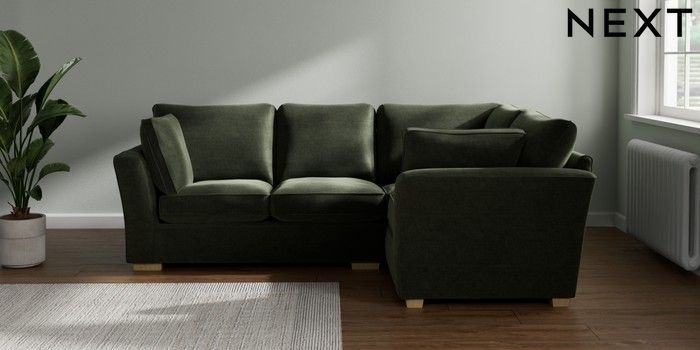 7.2.10 Heath Highback Medium Corner Sofa - Right Hand Luxe Chenille Mid Green Block - Light | Made Click here to use our website with more accessibility support, for example screen readers