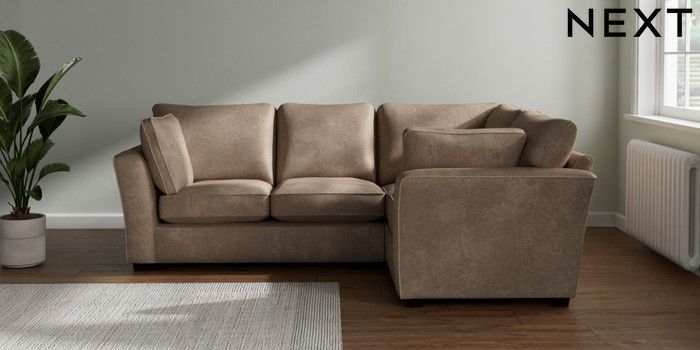 7.2.10 Heath Highback Medium Corner Sofa - Right Hand Plush Chenille Mid Natural Block - Dark | Made Click here to use our website with more accessibility support, for example screen readers