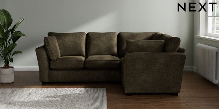 7.2.10 Heath Highback Medium Corner Sofa - Right Hand Plush Chenille Moss Green Block - Dark | Made Click here to use our website with more accessibility support, for example screen readers
