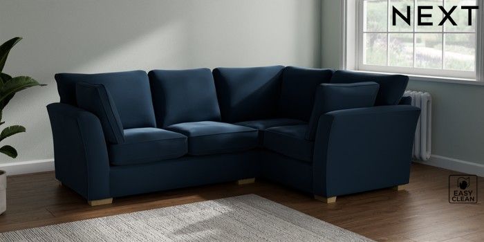 7.2.10 Heath Highback Medium Corner Sofa - Right Hand Plush Velvet Easy Clean Airforce Blue Block - Light | Made Click here to use our website with more accessibility support, for example screen readers