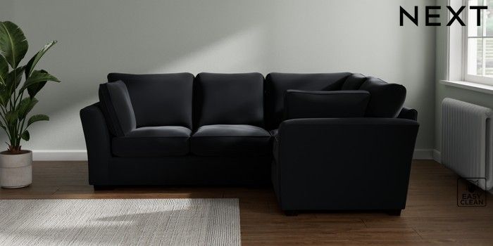 7.2.10 Heath Highback Medium Corner Sofa - Right Hand Plush Velvet Easy Clean Charcoal Grey Block - Dark | Made Click here to use our website with more accessibility support, for example screen readers