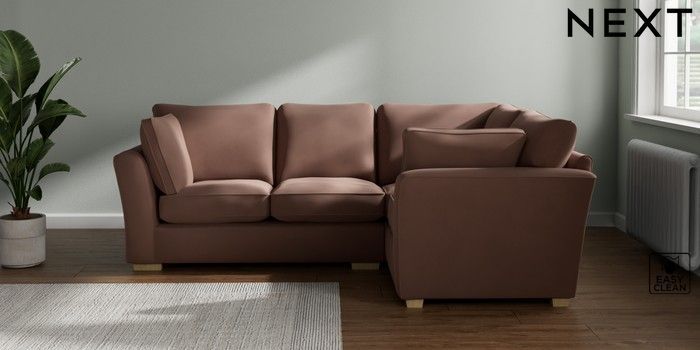 7.2.10 Heath Highback Medium Corner Sofa - Right Hand Plush Velvet Easy Clean Mid Natural Block - Light | Made Click here to use our website with more accessibility support, for example screen readers