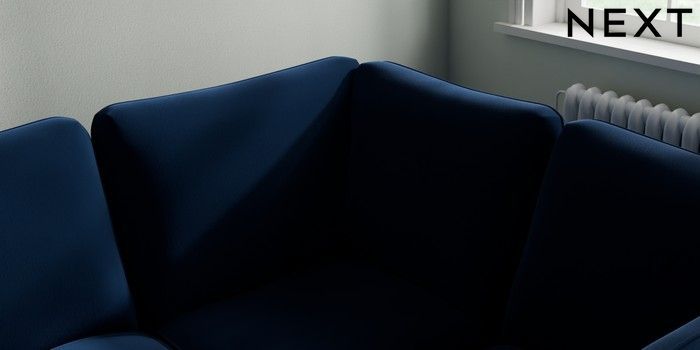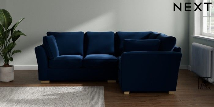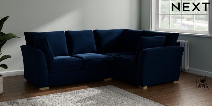 7.2.10 Heath Highback Medium Corner Sofa - Right Hand Plush Velvet Easy Clean Navy Blue Block - Light | Made Click here to use our website with more accessibility support, for example screen readers