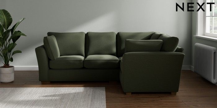7.2.10 Heath Highback Medium Corner Sofa - Right Hand Relaxed Linen Look Dark Green Block - Mid | Made Click here to use our website with more accessibility support, for example screen readers