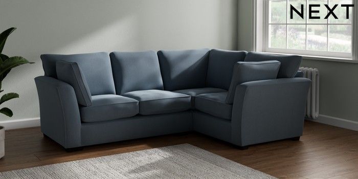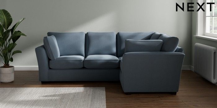7.2.10 Heath Highback Medium Corner Sofa - Right Hand Relaxed Linen Look Mid Blue Block - Dark | Made Click here to use our website with more accessibility support, for example screen readers