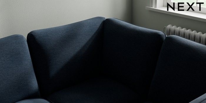 7.2.10 Heath Highback Medium Corner Sofa - Right Hand Ripple Chenille Dark Blue Block - Light | Made Click here to use our website with more accessibility support, for example screen readers