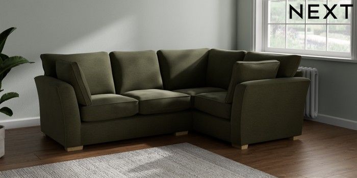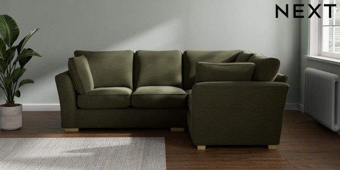 7.2.10 Heath Highback Medium Corner Sofa - Right Hand Ripple Chenille Mid Moss Green Block - Light | Made Click here to use our website with more accessibility support, for example screen readers