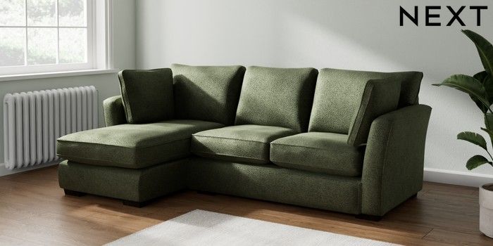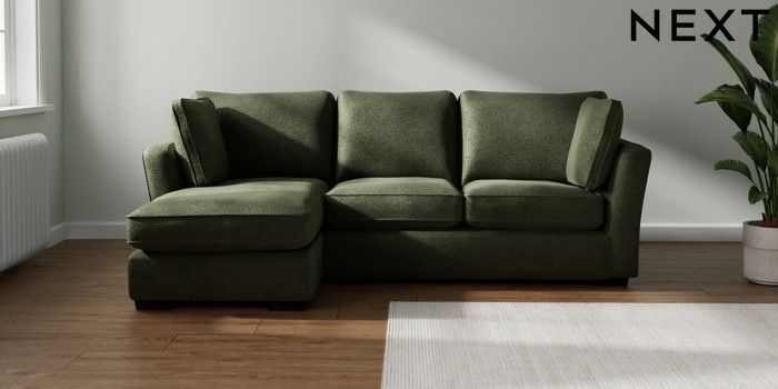 7.2.10 Heath Highback Medium Sofa Chaise - Left Hand Boucle Chenille Dark Moss Green Block - Dark | Made Click here to use our website with more accessibility support, for example screen readers