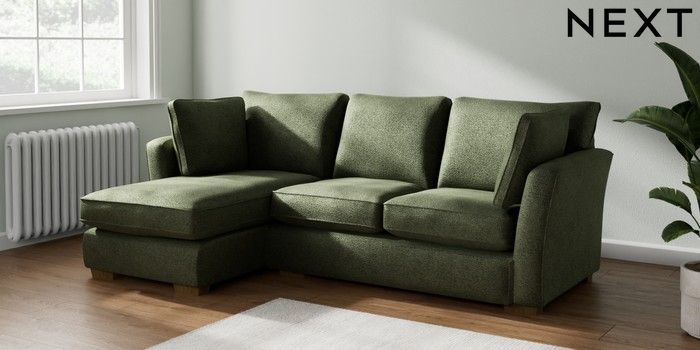 7.2.10 Heath Highback Medium Sofa Chaise - Left Hand Boucle Chenille Dark Moss Green Block - Mid | Made Click here to use our website with more accessibility support, for example screen readers