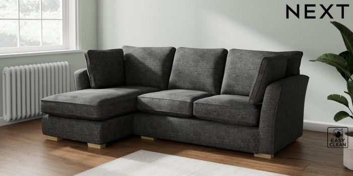 7.2.10 Heath Highback Medium Sofa Chaise - Left Hand Boucle Weave Easy Clean Charcoal Grey Block - Light | Made Click here to use our website with more accessibility support, for example screen readers