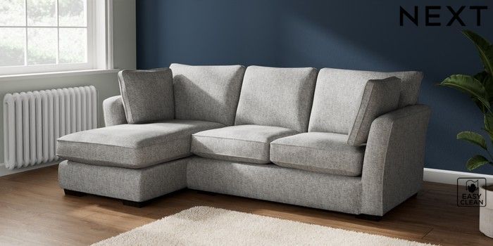 7.2.10 Heath Highback Medium Sofa Chaise - Left Hand Chunky Boucle Easy Clean Light Grey Block - Dark | Made Click here to use our website with more accessibility support, for example screen readers