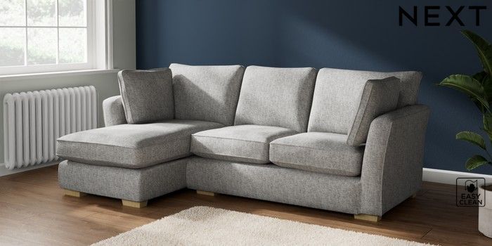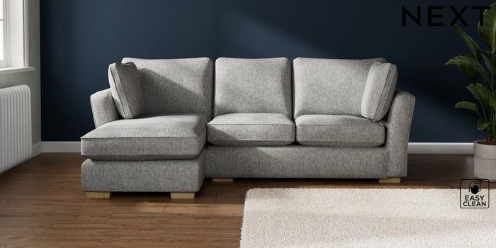 7.2.10 Heath Highback Medium Sofa Chaise - Left Hand Chunky Boucle Easy Clean Light Grey Block - Light | Made Click here to use our website with more accessibility support, for example screen readers