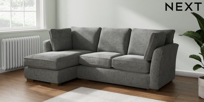 7.2.10 Heath Highback Medium Sofa Chaise - Left Hand Chunky Chenille Dark Grey Block - Mid | Made Click here to use our website with more accessibility support, for example screen readers