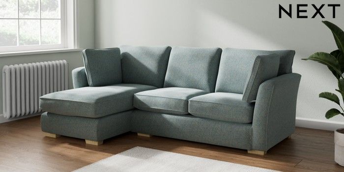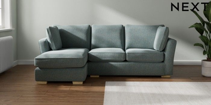 7.2.10 Heath Highback Medium Sofa Chaise - Left Hand Chunky Marl Mid Blue Block - Light | Made Click here to use our website with more accessibility support, for example screen readers
