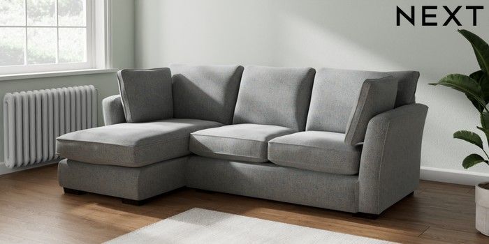 7.2.10 Heath Highback Medium Sofa Chaise - Left Hand Chunky Marl Mid Grey Block - Dark | Made Click here to use our website with more accessibility support, for example screen readers